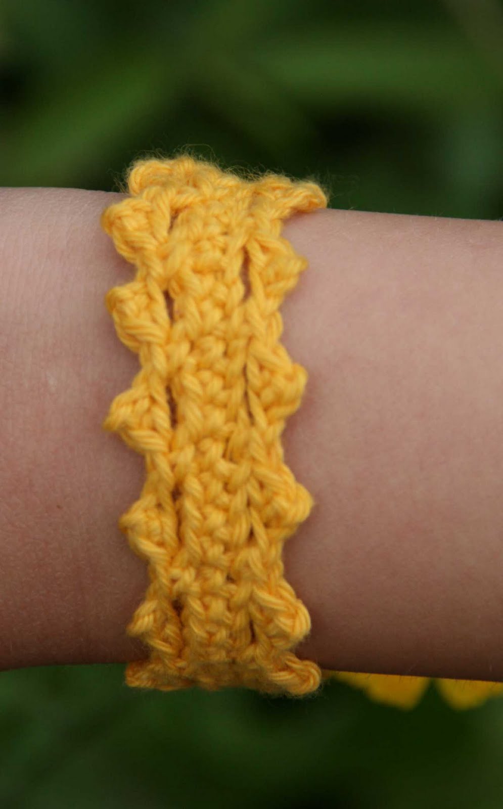 Garntype: 100% bomuld (bomuld udvider sig når det bliver brugt, så lav hellere armbåndene for stramme end for løse)