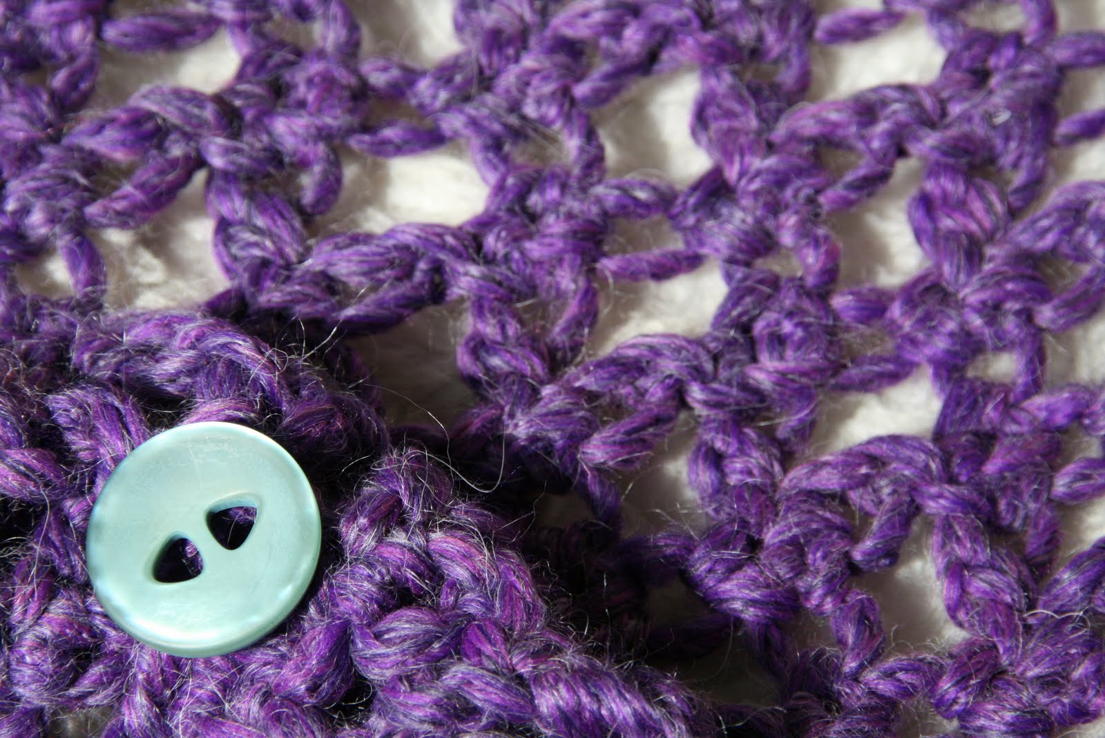 start med 4 lm (tæller for 1 stgm + 1 lm), spring 1 m over og lav dernæst 1 stgm i næste maske efterfulgt af en 1 lm. Fortsæt mønsteret således -*1 stgm, 1 lm, spring 1 m over*. Der vendes med 4 lm og springes 1 m over. Der hækles i alt 7 rækker til den nederste del, og 8 rækker til den øverste del. På den øverste den hækles der langs ret siden 3 rækker fm'er, på 4. række hækles der 4 fm, dernæst 10 lm som knaphulstrisse, 1 fm i de næste 5 m, 10 lm som knaphulstrisse, 4 fm - i stedet for at afslutte hækles der en kant af fm hele vejen over til den anden siden, hvor der ligeledes hækles 3 rækker fm'er. Bryd garnet og hæft ender og sy knapper på.