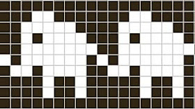 Slå 81 masker op, strik 12 pinde rib (1 r, 1 vr). Strik dernæst 2 pinde ret med grundfarve og begynd dernæst mønsteret efter dette diagram: