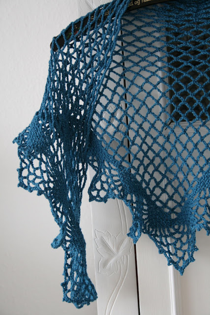 Tørklædet består af 2 dele hvor den ene side hækles først hvorefter den anden side hækles ud fra startlænken af første del!