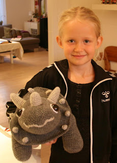 4. omg: vend med 1 lm, hækl 2 km til lm-buen, her hækles 3 lm (=1 stgm), 1 stgm, 2 lm, 2 stgm, 5 lm hen til næste V hvor der om lm-buen hækles 10 stgm, 5 lm til næste v, 2 stgm, 2 lm, 2 stgm