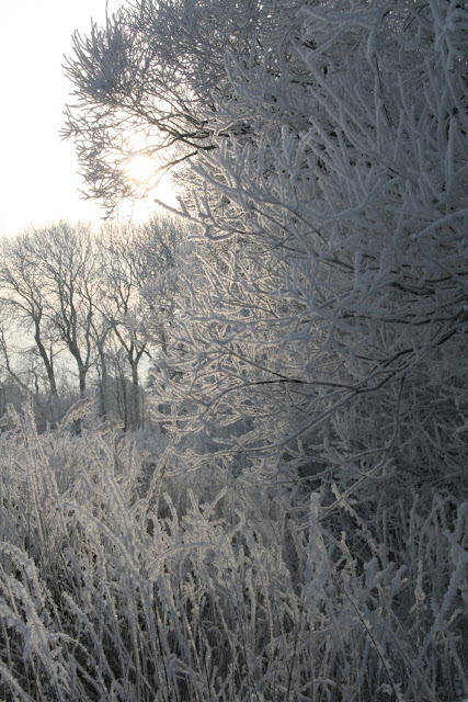 Og så var vejret da bare helt fantastisk i torsdags!! Jeg kunne ikke dy mig for hoppe i det varme tøj og snuppe et par billeder af den "langhåret frost" som det hedder herhjemme: